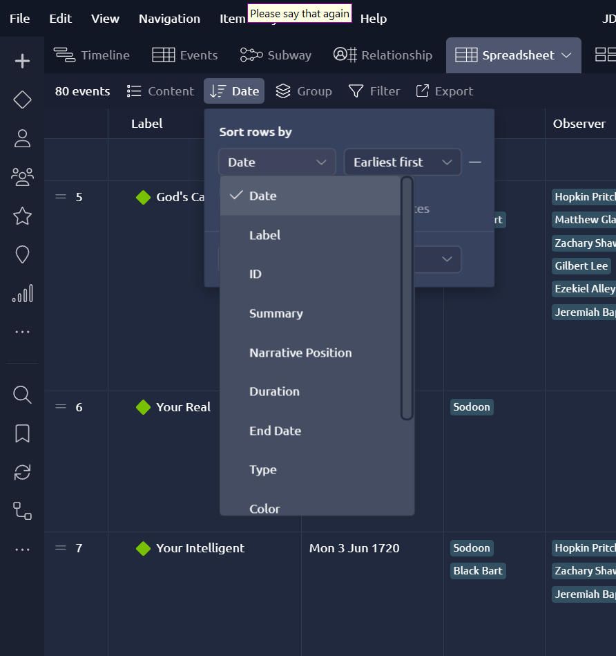 Is there a way to have a column in the spreadsheet with Narrative Position; it does appear on the timeline?