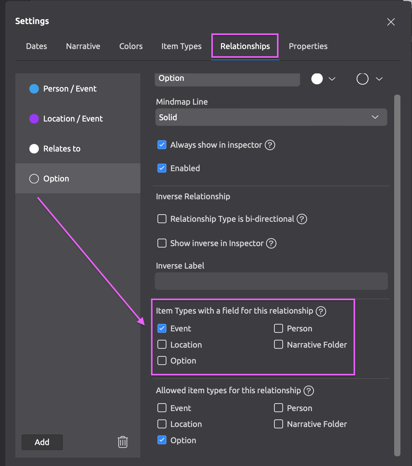 You’ll then be able to use the relationships panel to assign multiple options as needed.