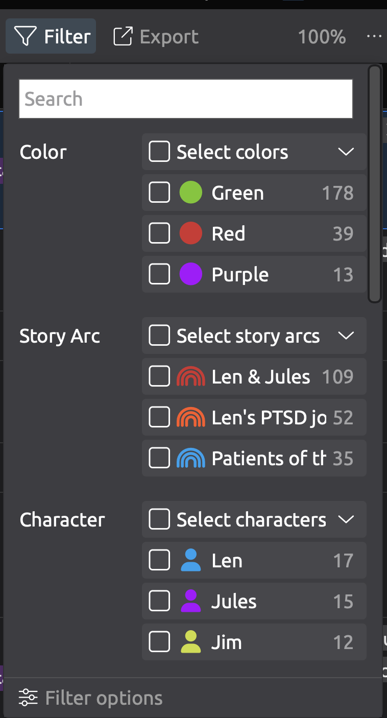 Not so much a bug as a frustrating choice by Aeon, I think: I use a small Mac Air laptop and a 13" iPad Air as an external monitor. I’m finding that text is cut off (in some cases enough to be a problem, in most cases just an annoyance) because menus are constrained to a particular width that is often too narrow for the words (like ‘Relationships,’ ‘Spreadsheet,’ ‘Narrative Folders,’ and ‘Character Groups’ for example). It’s more a problem when looking at user-entered information like event names (especially in the inspector) but even some program text is truncated.